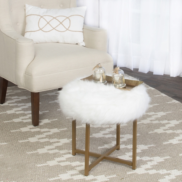 White Faux Fur Stool Kirklands