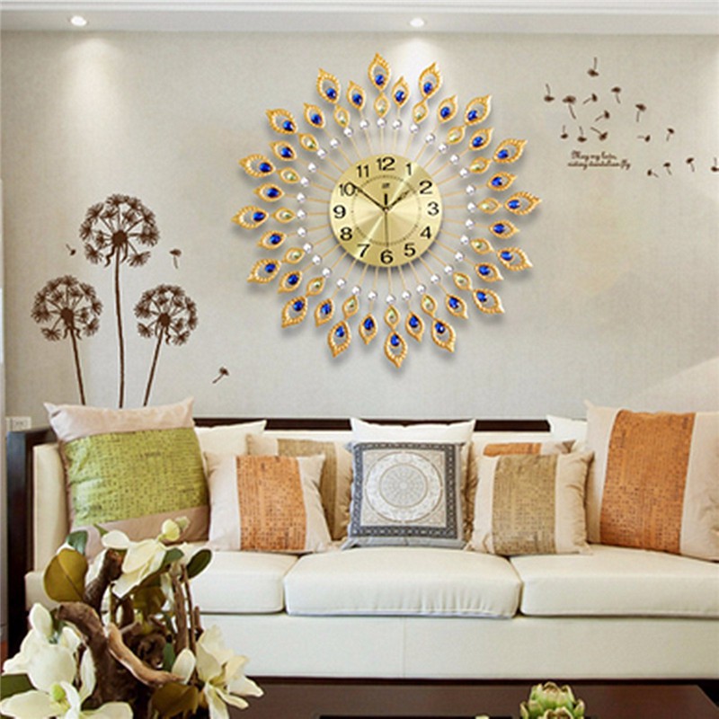 Lila Ready New Peacock Diamond Iron Art Wall Clock Living Room